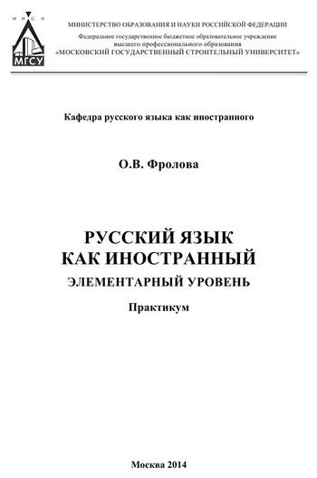 Фролова О.В. Русский язык как иностранный. Элементарный уровень : практикум / Фролова О.В.. — Москва : Московский государственный строительный университет, ЭБС АСВ, 2014. — 40 c. — Текст : электронный // Цифровой образовательный ресурс IPR SMART : [сайт]. — URL: https://www.iprbookshop.ru/26862.html (дата обращения: 13.12.2025). — Режим доступа: для авторизир. пользователей