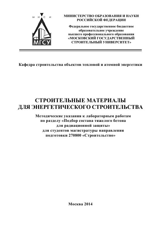 Строительные материалы для энергетического строительства. Методические указания к лабораторным работам по разделу «Подбор состава тяжелого бетона для радиационной защиты» для студентов магистратуры направления подготовки 270800 «Строительство»