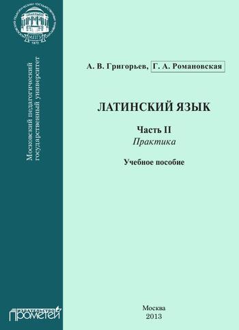 Григорьев, А. В. Латинский язык. Часть II : практика. Учебное пособие / А. В. Григорьев, Г. А. Романовская. — Москва : Прометей, 2013. — 138 c. — ISBN 978-5-7042-2489-1. — Текст : электронный // Цифровой образовательный ресурс IPR SMART : [сайт]. — URL: https://www.iprbookshop.ru/26938.html (дата обращения: 03.06.2025). — Режим доступа: для авторизир. пользователей
