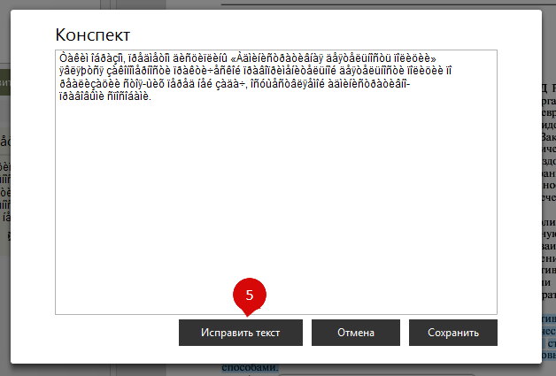 Для исправления сохраненного ранее конспекта, состоящего из нечитаемых символов