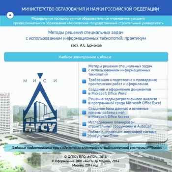 Методы решения специальных задач с использованием информационных технологий : практикум / составители А. С. Ермаков. — Москва : Московский государственный строительный университет, Ай Пи Эр Медиа, ЭБС АСВ, 2014. — 133 c. — ISBN 978-5-7264-0973-3. — Текст : электронный // Цифровой образовательный ресурс IPR SMART : [сайт]. — URL: https://www.iprbookshop.ru/27893.html (дата обращения: 06.01.2025). — Режим доступа: для авторизир. пользователей