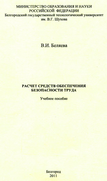 Беляева В.И. Расчет средств обеспечения безопасности труда : учебное пособие / Беляева В.И.. — Белгород : Белгородский государственный технологический университет им. В.Г. Шухова, ЭБС АСВ, 2011. — 87 c. — Текст : электронный // Цифровой образовательный ресурс IPR SMART : [сайт]. — URL: https://www.iprbookshop.ru/28393.html (дата обращения: 08.12.2025). — Режим доступа: для авторизир. пользователей