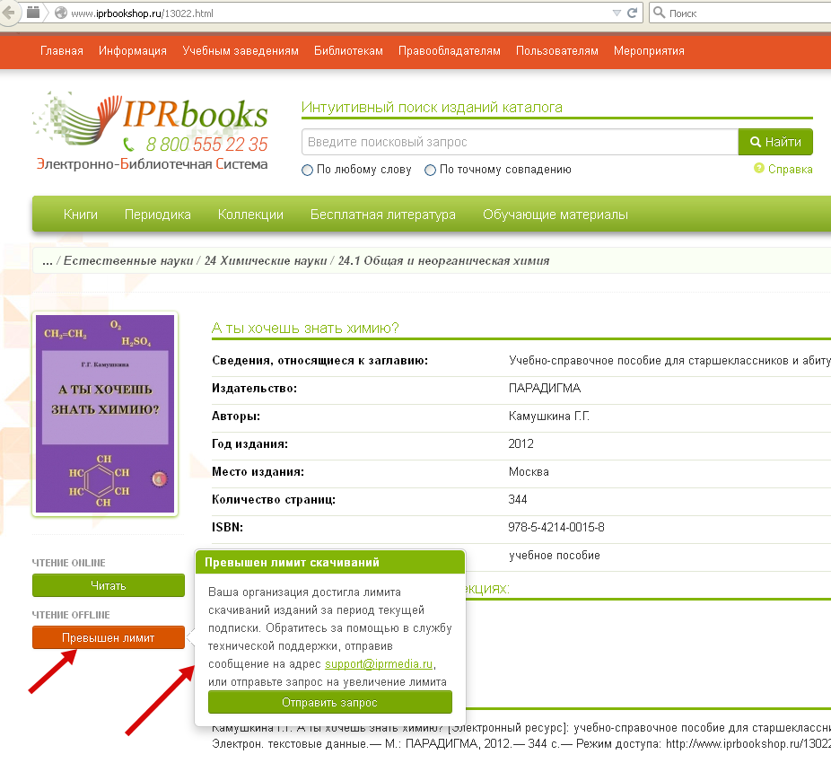 Если вместо кнопки "Скачать" под обложкой издания отображается кнопка "Превышен лимит", это означает, что пользователями Вашей организации было превышено число скачиваний изданий, установленное условиями текущей подписки. В данной ситуации представители Вашей организации могут связаться с нашим менеджером для расширения подписки на большее число скачиваний.