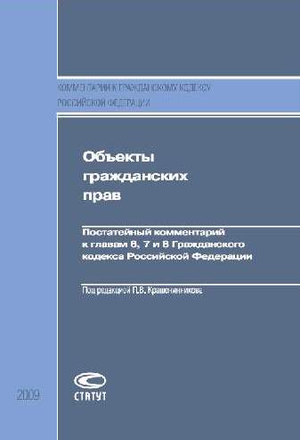 Объекты гражданских прав : постатейный комментарий к главам 6, 7 и 8 Гражданского кодекса Российской Федерации / В. В. Андропов, Б. М. Гонгало, П. В. Крашенинников [и др.] ; под редакцией П. В. Крашенинников. — Москва : Статут, 2009. — 225 c. — ISBN 978-5-8354-0556-5. — Текст : электронный // Цифровой образовательный ресурс IPR SMART : [сайт]. — URL: https://www.iprbookshop.ru/28952.html (дата обращения: 08.12.2025). — Режим доступа: для авторизир. пользователей
