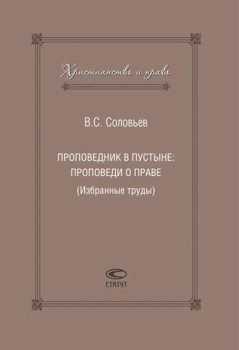 Соловьев, В. С. Проповедник в пустыне : проповеди о праве (Избранные труды) / В. С. Соловьев ; составители В. И. Лафитский, Е. А. Юртаева. — Москва : Статут, 2014. — 623 c. — ISBN 978-5-8354-1016-3. — Текст : электронный // Цифровой образовательный ресурс IPR SMART : [сайт]. — URL: https://www.iprbookshop.ru/29040.html (дата обращения: 01.04.2025). — Режим доступа: для авторизир. пользователей