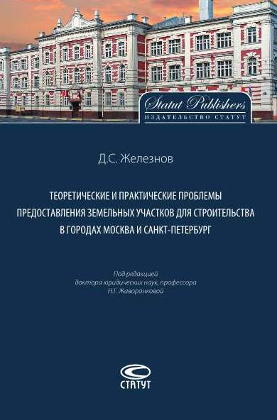Железнов, Д. С. Теоретические и практические проблемы предоставления земельных участков для строительства в городах Москва и Санкт-Петербург / Д. С. Железнов ; под редакцией Н. Г. Жаворонкова. — Москва : Статут, 2014. — 184 c. — ISBN 978-5-8354-1027-9. — Текст : электронный // Цифровой образовательный ресурс IPR SMART : [сайт]. — URL: https://www.iprbookshop.ru/29080.html (дата обращения: 15.03.2025). — Режим доступа: для авторизир. пользователей