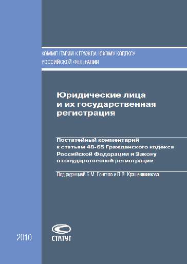 Юридические лица и их государственная регистрация : постатейный комментарий к статьям 48–65 Гражданского кодекса Российской Федерации и Федеральному закону «О государственной регистрации юридических лиц и индивидуальных предпринимателей» / В. В. Андропов, К. П. Беляев, Б. М. Гонгало [и др.] ; под редакцией Б. М. Гонгало, П. В. Крашенинников. — Москва : Статут, 2010. — 526 c. — ISBN 978-5-8354-0596-1. — Текст : электронный // Цифровой образовательный ресурс IPR SMART : [сайт]. — URL: https://www.iprbookshop.ru/29099.html (дата обращения: 23.10.2025). — Режим доступа: для авторизир. пользователей
