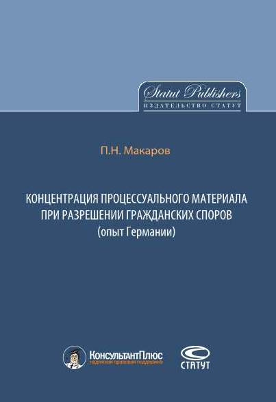 Макаров, П. Н. Концентрация процессуального материала при разрешении гражданских споров (опыт Германии) / П. Н. Макаров. — Москва : Статут, 2014. — 335 c. — ISBN 978-5-8354-1023-1. — Текст : электронный // Цифровой образовательный ресурс IPR SMART : [сайт]. — URL: https://www.iprbookshop.ru/29214.html (дата обращения: 16.10.2024). — Режим доступа: для авторизир. пользователей