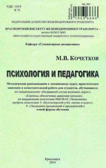 Кочетков М.В. Психология и педагогика : методические рекомендации к лекционному курсу, практическим занятиям и самостоятельной работе для студентов очной формы обучения всех специальностей и направлений / Кочетков М.В.. — Красноярск : Красноярский институт железнодорожного транспорта - филиал Иркутского государственного университета путей сообщения, 2015. — 106 c. — Текст : электронный // Цифровой образовательный ресурс IPR SMART : [сайт]. — URL: https://www.iprbookshop.ru/29287.html (дата обращения: 30.03.2026). — Режим доступа: для авторизир. пользователей