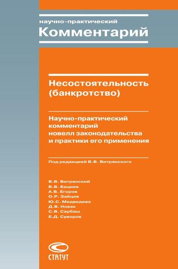 Несостоятельность (банкротство) : научно-практический комментарий новелл законодательства и практики его применения / В. В. Витрянский, В. В. Бациев, А. В. Егоров [и др.] ; под редакцией В. В. Витрянский. — Москва : Статут, 2012. — 336 c. — ISBN 978-5-8354-0822-1. — Текст : электронный // Цифровой образовательный ресурс IPR SMART : [сайт]. — URL: https://www.iprbookshop.ru/29325.html (дата обращения: 14.09.2025). — Режим доступа: для авторизир. пользователей