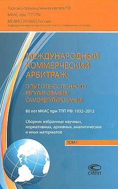 Международный коммерческий арбитраж. Опыт отечественного регулирования/саморегулирования. К 80-летнему юбилею МКАС при ТПП РФ. 1932-2012. Том I. Сборник избранных научных, нормативных, архивных, аналитических и иных материалов