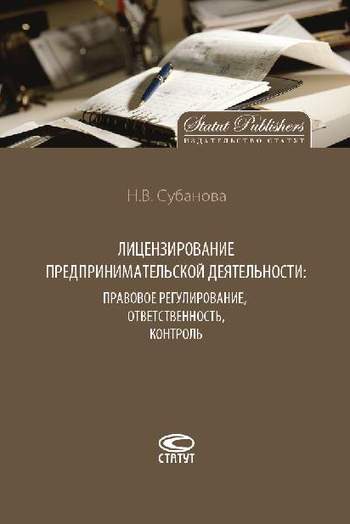 Субанова Н.В. Лицензирование предпринимательской деятельности. Правовое регулирование, ответственность, контроль : монография / Субанова Н.В.. — Москва : Статут, 2011. — 352 c. — ISBN 978-5-8354-0791-0. — Текст : электронный // Цифровой образовательный ресурс IPR SMART : [сайт]. — URL: https://www.iprbookshop.ru/29390.html (дата обращения: 20.12.2025). — Режим доступа: для авторизир. пользователей