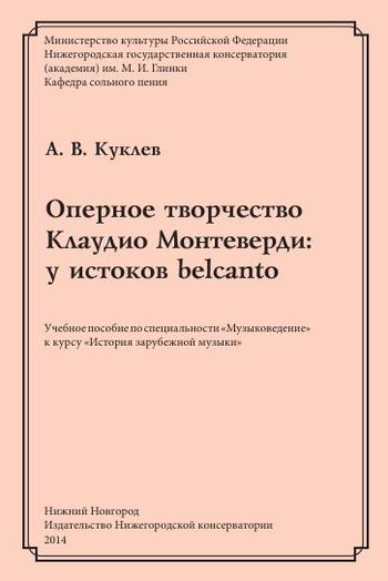Куклев А.В. Оперное творчество Клаудио Монтеверди. У истоков belcanto : учебное пособие / Куклев А.В.. — Нижний Новгород : Нижегородская государственная консерватория (академия) им. М.И. Глинки, 2014. — 88 c. — Текст : электронный // Цифровой образовательный ресурс IPR SMART : [сайт]. — URL: https://www.iprbookshop.ru/29743.html (дата обращения: 08.12.2025). — Режим доступа: для авторизир. пользователей