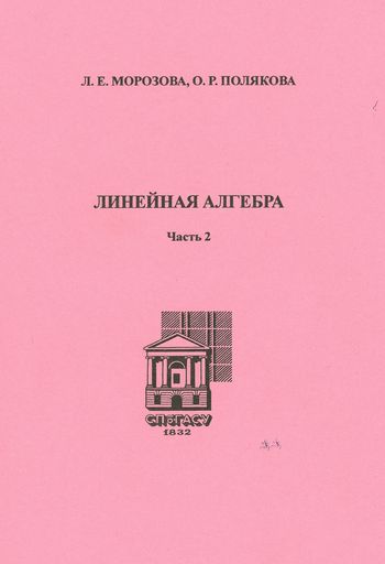 Морозова, Л. Е. Линейная алгебра. Часть 2 : учебное пособие / Л. Е. Морозова, О. Р. Полякова. — Санкт-Петербург : Санкт-Петербургский государственный архитектурно-строительный университет, ЭБС АСВ, 2014. — 108 c. — ISBN 978-5-9227-0482-3. — Текст : электронный // Цифровой образовательный ресурс IPR SMART : [сайт]. — URL: https://www.iprbookshop.ru/30007.html (дата обращения: 06.02.2025). — Режим доступа: для авторизир. пользователей