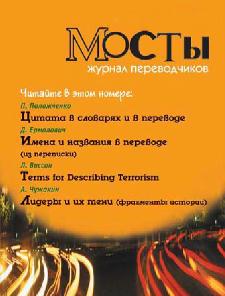 Журнал практикующего переводчика «Мосты» выходит в свет с 2004 г. – это одно из немногих профессиональных периодических изданий для переводчиков, и его с нетерпением ждут читатели по всему миру. В журнале публикуются статьи переводчиков различных специальностей, как устных, так и письменных. На страницах журнала переводчики, специализирующиеся в различных областях знаний, имеют возможность обсуждать актуальные проблемы, полемизировать друг с другом, делиться секретами профессионального мастерства.