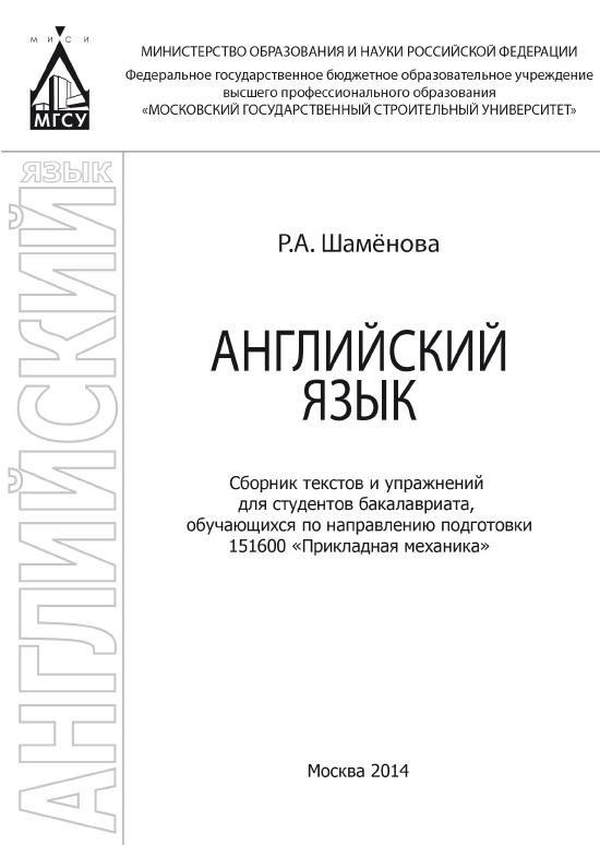 Шамёнова Р.А. Английский язык : сборник текстов и упражнений для студентов бакалавриата, обучающихся по направлению подготовки 151600 «Прикладная механика» / Шамёнова Р.А.. — Москва : Московский государственный строительный университет, ЭБС АСВ, 2014. — 80 c. — ISBN 978-5-7264-0893-4. — Текст : электронный // Цифровой образовательный ресурс IPR SMART : [сайт]. — URL: https://www.iprbookshop.ru/30336.html (дата обращения: 07.12.2025). — Режим доступа: для авторизир. пользователей