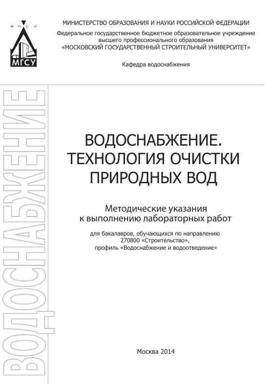 Водоснабжение. Технология очистки природных вод : методические указания по выполнению лабораторных работ для бакалавров, обучающихся по направлению 270800 «Строительство», профиль «Водоснабжение и водоотведение» / . — Москва : Московский государственный строительный университет, ЭБС АСВ, 2014. — 88 c. — Текст : электронный // Цифровой образовательный ресурс IPR SMART : [сайт]. — URL: https://www.iprbookshop.ru/30340.html (дата обращения: 05.12.2025). — Режим доступа: для авторизир. пользователей