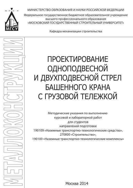 Проектирование одноподвесной и двухподвесной стрел башенного крана с грузовой тележкой. Методические указания для студентов направления подготовки 190109 «Наземные транспортно-технологические средства», 270800 «Строительство», 190100 «Наземные транспортно-технологические комплексы»