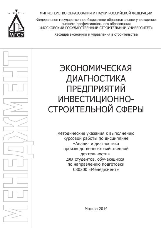Экономическая диагностика предприятий инвестиционно-строительной сферы. Методические указания к выполнению курсовой работы по дисциплине «Анализ и диагностика производственно-хозяйственной деятельности» для студентов, обучающихся по направлению подготовки 080200 «Менеджмент»