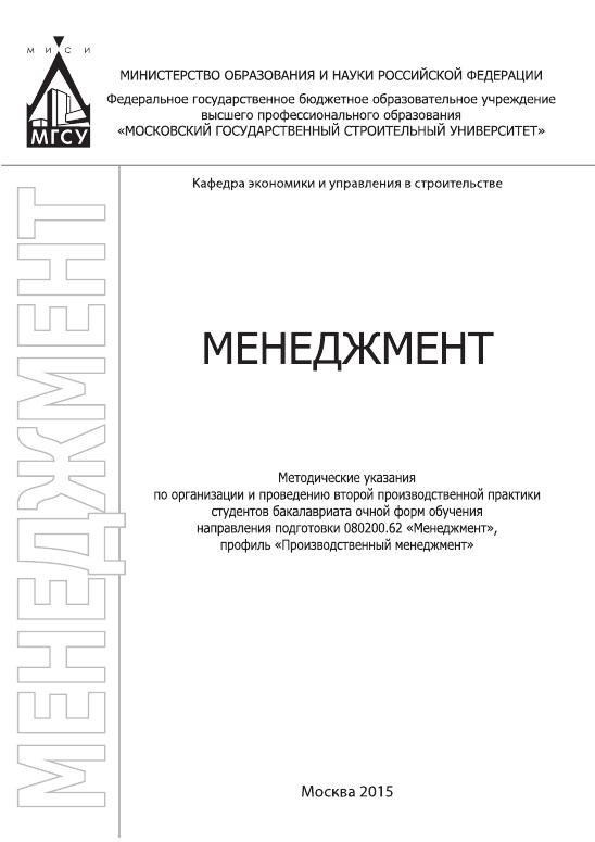 Менеджмент : методические указания по организации и проведению второй производственной практики студентов бакалавриата очной формы обучения направления подготовки 080200.62 «Менеджмент», профиль «Производственный менеджмент» / . — Москва : Московский государственный строительный университет, ЭБС АСВ, 2015. — 16 c. — Текст : электронный // Цифровой образовательный ресурс IPR SMART : [сайт]. — URL: https://www.iprbookshop.ru/30432.html (дата обращения: 05.12.2025). — Режим доступа: для авторизир. пользователей
