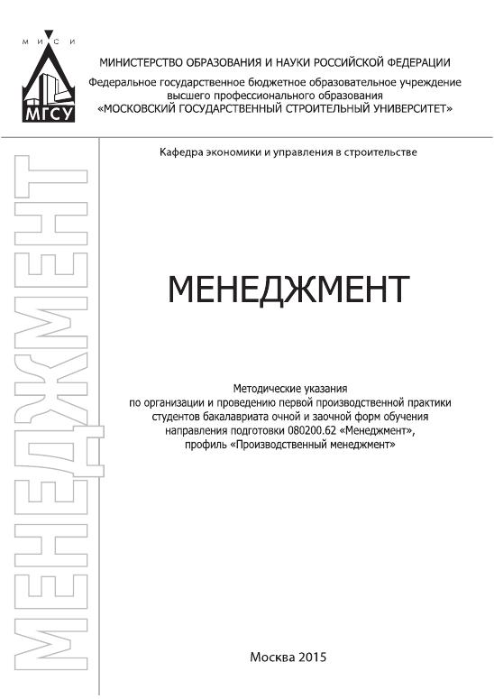 Менеджмент : методические указания по организации и проведению первой производственной практики студентов бакалавриата всех форм обучения, направления подготовки 080200.62 «Менеджмент», профиль «Производственный менеджмент» / . — Москва : Московский государственный строительный университет, ЭБС АСВ, 2015. — 16 c. — Текст : электронный // Цифровой образовательный ресурс IPR SMART : [сайт]. — URL: https://www.iprbookshop.ru/30433.html (дата обращения: 06.12.2025). — Режим доступа: для авторизир. пользователей