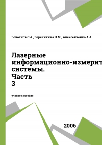 Болотнов С.А. Лазерные информационно-измерительные системы. Часть 3 : учебное пособие / Болотнов С.А., Вереникина Н.М., Алексейченко А.А.. — Москва : Московский государственный технический университет имени Н.Э. Баумана, 2006. — 94 c. — ISBN 5-7038-2827-9. — Текст : электронный // Цифровой образовательный ресурс IPR SMART : [сайт]. — URL: https://www.iprbookshop.ru/31434.html (дата обращения: 18.12.2025). — Режим доступа: для авторизир. пользователей