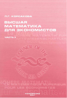 Корсакова Л.Г. Высшая математика для экономистов. Часть 2 : учебное пособие / Корсакова Л.Г.. — Калининград : Балтийский федеральный университет им. Иммануила Канта, 2007. — 151 c. — ISBN 978-5-88874-850-3. — Текст : электронный // Цифровой образовательный ресурс IPR SMART : [сайт]. — URL: https://www.iprbookshop.ru/3171.html (дата обращения: 20.12.2025). — Режим доступа: для авторизир. пользователей