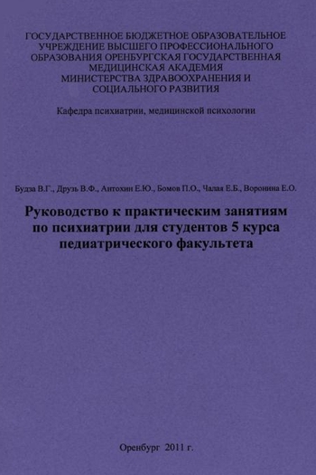 Руководство к практическим занятиям по психиатрии для студентов 5 курса педиатрического факультета / В.Г. Будза [и др.].. — Оренбург : Оренбургская государственная медицинская академия, 2011. — 116 c. — Текст : электронный // Цифровой образовательный ресурс IPR SMART : [сайт]. — URL: https://www.iprbookshop.ru/31834.html (дата обращения: 15.12.2025). — Режим доступа: для авторизир. пользователей
