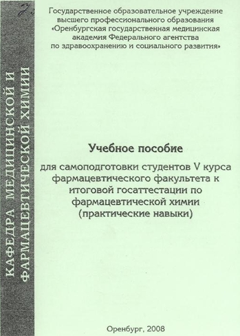 Учебное пособие для самоподготовки студентов V курса фармацевтического факультета к итоговой госаттестации по фармацевтической химии (практические навыки)