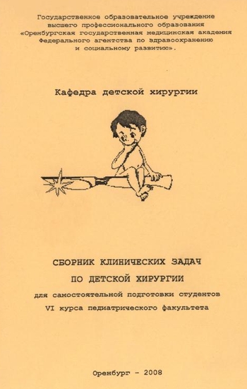 Учебное пособие для самостоятельной работы студентов 6 курса педиатрического факультета «Сборник клинических задач по детской хирургии» / И.В. Афуков [и др.].. — Оренбург : Оренбургская государственная медицинская академия, 2008. — 80 c. — Текст : электронный // Цифровой образовательный ресурс IPR SMART : [сайт]. — URL: https://www.iprbookshop.ru/31853.html (дата обращения: 05.12.2025). — Режим доступа: для авторизир. пользователей