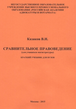 Казаков, В. Н. Сравнительное правоведение (для учащихся магистратуры) : краткий учебник для вузов / В. Н. Казаков. — Москва : Российская Академия адвокатуры и нотариата, 2015. — 222 c. — ISBN 978-5-93858-084-8. — Текст : электронный // Цифровой образовательный ресурс IPR SMART : [сайт]. — URL: https://www.iprbookshop.ru/33397.html (дата обращения: 07.02.2024). — Режим доступа: для авторизир. пользователей