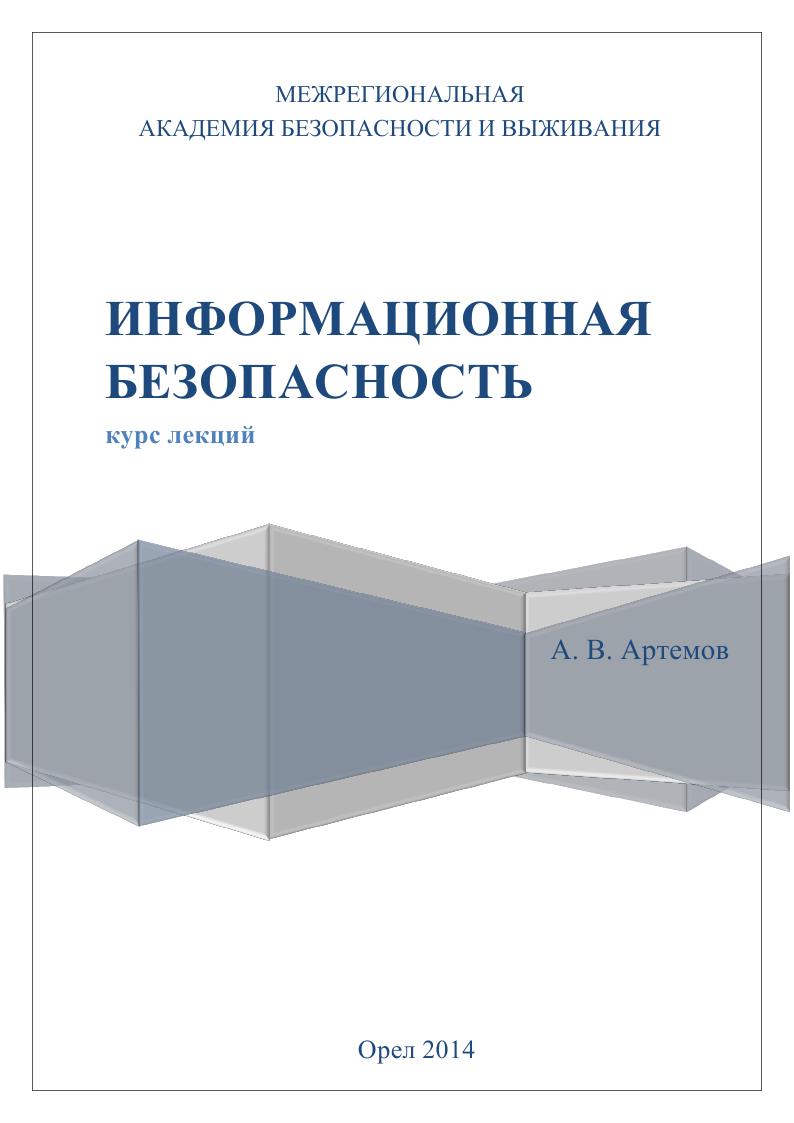 Артемов, А. В. Информационная безопасность : курс лекций / А. В. Артемов. — Орел : Межрегиональная Академия безопасности и выживания (МАБИВ), 2014. — 256 c. — Текст : электронный // Цифровой образовательный ресурс IPR SMART : [сайт]. — URL: https://www.iprbookshop.ru/33430.html (дата обращения: 12.02.2025). — Режим доступа: для авторизир. пользователей