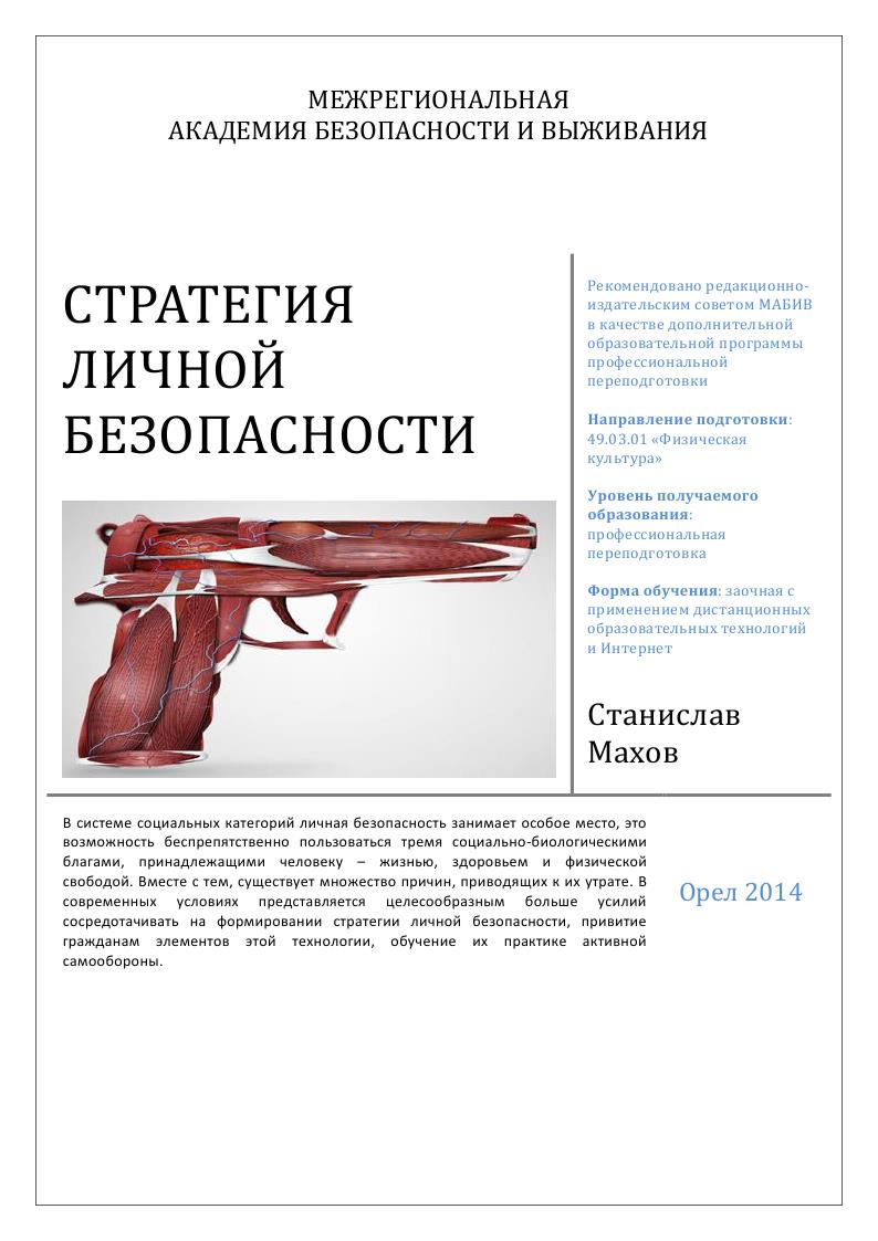 Махов С.Ю. Стратегия личной безопасности : дополнительная образовательная программа профессиональной переподготовки / Махов С.Ю.. — Орел : Межрегиональная Академия безопасности и выживания (МАБИВ), 2014. — 39 c. — Текст : электронный // Цифровой образовательный ресурс IPR SMART : [сайт]. — URL: https://www.iprbookshop.ru/33441.html (дата обращения: 05.12.2025). — Режим доступа: для авторизир. пользователей