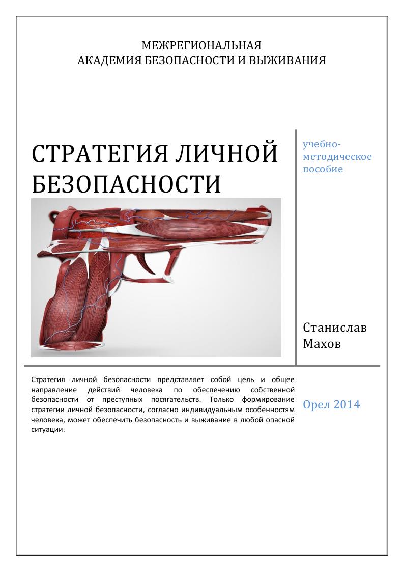 Махов, С. Ю. Стратегия личной безопасности : учебно-методическое пособие / С. Ю. Махов. — Орел : Межрегиональная Академия безопасности и выживания (МАБИВ), 2014. — 97 c. — Текст : электронный // Цифровой образовательный ресурс IPR SMART : [сайт]. — URL: https://www.iprbookshop.ru/33442.html (дата обращения: 06.03.2025). — Режим доступа: для авторизир. пользователей