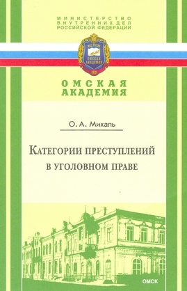 Михаль, О. А. Категории преступлений в уголовном праве : учебное пособие / О. А. Михаль. — Омск : Омская академия МВД России, 2007. — 47 c. — ISBN 978-5-88651-420-9. — Текст : электронный // Цифровой образовательный ресурс IPR SMART : [сайт]. — URL: https://www.iprbookshop.ru/35995.html (дата обращения: 04.12.2025). — Режим доступа: для авторизир. пользователей