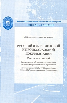 Русский язык в деловой и процессуальной документации. Конспекты лекций для курсантов, обучающихся по программе высшего профессионального образования. Специальности: 030501.65 Юриспруденция, 030505.65 Правоохранительная деятельность