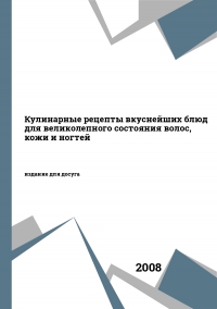 Кулинарные рецепты вкуснейших блюд для великолепного состояния волос, кожи и ногтей / . — Москва : РИПОЛ классик, 2008. — 192 c. — ISBN 978-5-386-00524-5. — Текст : электронный // Цифровой образовательный ресурс IPR SMART : [сайт]. — URL: https://www.iprbookshop.ru/37407.html (дата обращения: 05.12.2025). — Режим доступа: для авторизир. пользователей