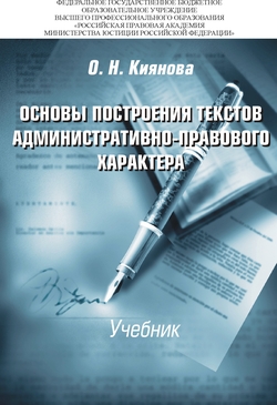 Киянова, О. Н. Основы построения текстов административно-правового характера : учебник / О. Н. Киянова. — Москва : Всероссийский государственный университет юстиции (РПА Минюста России), 2012. — 384 c. — ISBN 978-5-89172-347-4. — Текст : электронный // Цифровой образовательный ресурс IPR SMART : [сайт]. — URL: https://www.iprbookshop.ru/41205.html (дата обращения: 31.05.2025). — Режим доступа: для авторизир. пользователей