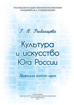 Рыбинцева, Г. В. Культура и искусство Юга России : программа учебного курса / Г. В. Рыбинцева. — Ростов-на-Дону : Ростовская государственная консерватория им. С.В. Рахманинова, 2013. — 24 c. — Текст : электронный // Цифровой образовательный ресурс IPR SMART : [сайт]. — URL: https://www.iprbookshop.ru/43195.html (дата обращения: 19.09.2024). — Режим доступа: для авторизир. пользователей
