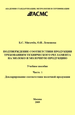 Мигачёв, Б. С. Подтверждение соответствия продукции требованиям технического регламента на молоко и молочную продукцию. Часть 1. Обязательная сертификация молочной продукции : учебное пособие / Б. С. Мигачёв, О. И. Лемешева. — Москва : Академия стандартизации, метрологии и сертификации, 2009. — 17 c. — Текст : электронный // Цифровой образовательный ресурс IPR SMART : [сайт]. — URL: https://www.iprbookshop.ru/44284.html (дата обращения: 03.12.2025). — Режим доступа: для авторизир. пользователей