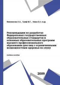 Рекомендации по разработке Федеральных государственных образовательных стандартов и основных образовательных программ высшего профессионального образования для лиц с ограниченными возможностями здоровья по слуху. Учебное пособие