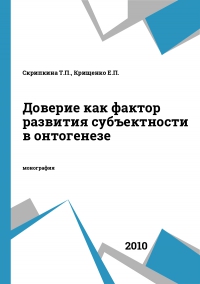 Скрипкина, Т. П. Доверие как фактор развития субъектности в онтогенезе : монография / Т. П. Скрипкина, Е. П. Крищенко. — Ростов-на-Дону : Издательство Южного федерального университета, 2010. — 328 c. — ISBN 978-5-9275-0759-7. — Текст : электронный // Цифровой образовательный ресурс IPR SMART : [сайт]. — URL: https://www.iprbookshop.ru/46950.html (дата обращения: 03.07.2025). — Режим доступа: для авторизир. пользователей