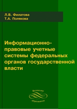 Филатова Л.В. Информационно-правовые учетные системы федеральных органов государственной власти : учебное пособие / Филатова Л.В., Полякова Т.А.. — Москва : Всероссийский государственный университет юстиции (РПА Минюста России), 2014. — 128 c. — ISBN 978-5-89172-901-8. — Текст : электронный // Цифровой образовательный ресурс IPR SMART : [сайт]. — URL: https://www.iprbookshop.ru/47256.html (дата обращения: 05.12.2025). — Режим доступа: для авторизир. пользователей