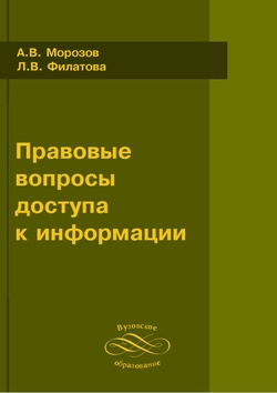 Морозов А.В. Правовые вопросы доступа к информации : учебное пособие / Морозов А.В., Филатова Л.В.. — Москва : Всероссийский государственный университет юстиции (РПА Минюста России), 2015. — 84 c. — ISBN 978-5-00094-180-5. — Текст : электронный // Цифровой образовательный ресурс IPR SMART : [сайт]. — URL: https://www.iprbookshop.ru/47267.html (дата обращения: 06.12.2025). — Режим доступа: для авторизир. пользователей