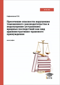 Сафоненков, П. Н. Пресечение опасности нарушения таможенного законодательства и недопущение (устранение) вредных последствий как вид административно-правового принуждения : монография / П. Н. Сафоненков. — Саратов : Вузовское образование, 2016. — 183 c. — Текст : электронный // Цифровой образовательный ресурс IPR SMART : [сайт]. — URL: https://www.iprbookshop.ru/47407.html (дата обращения: 11.02.2025). — Режим доступа: для авторизир. пользователей