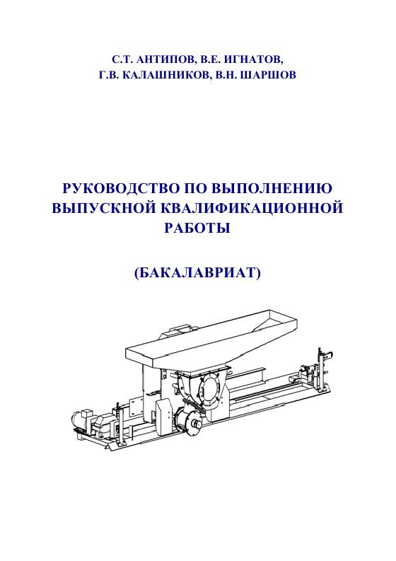 В учебном пособии даны рекомендации по объему, структуре, выбору темы и правилам оформления выпускной квалификационной работы, а также порядок защиты. Предназначено для бакалавров по направлению подготовки 15.03.02 - «Технологические машины и оборудование». Приведены примеры выполнения инженерных расчетов и чертежей графической части работы. Пособие оформлено по ГОСТ 2.105-95 ЕСКД «Общие требования к текстовым документам».