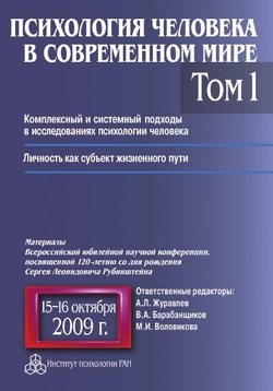 Психология человека в современном мире. Том 1. Комплексный и системный подходы в исследованиях психологии человека. Личность как субъект жизненного пути. Материалы Всероссийской юбилейной научной конференции, посвященной 120-летию со дня рождения С.Л. Рубинштейна, 15-16 октября 2009 г