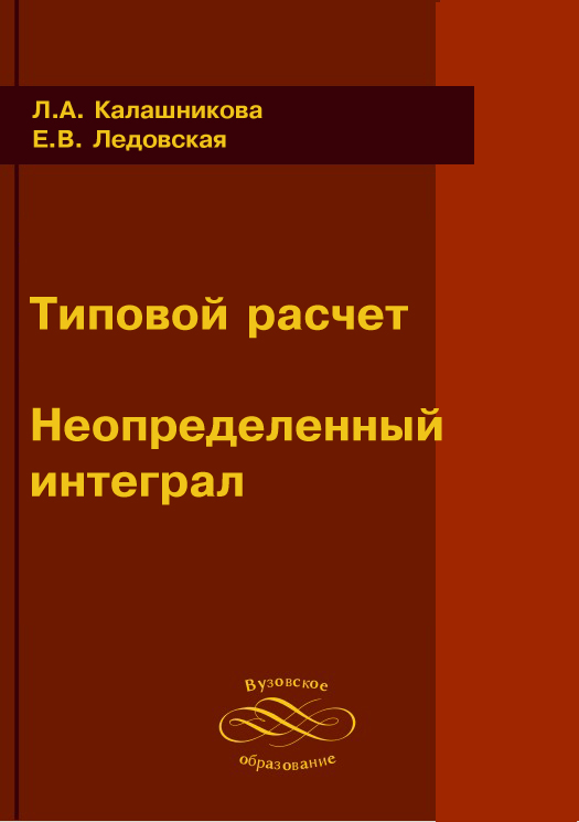 Калашникова, Л. А. Типовой расчёт. Неопределённый интеграл / Л. А. Калашникова, Е. В. Ледовская. — Москва : Московская государственная академия водного транспорта, 2015. — 47 c. — Текст : электронный // Цифровой образовательный ресурс IPR SMART : [сайт]. — URL: https://www.iprbookshop.ru/47963.html (дата обращения: 26.02.2024). — Режим доступа: для авторизир. пользователей