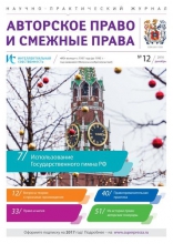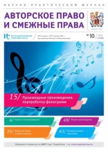 Научно-практический ежемесячный специализированный профессиональный журнал «Интеллектуальная собственность. Авторское право и смежные права» – правопреемник журнала «Интеллектуальная собственность», издаваемого с 1957 г. (до 1992 г. назывался «Вопросы изобретательства»). Основные освещаемые вопросы: – научные фундаментальные и прикладные исследования в сфере авторского права и смежных прав, а также материалов специалистов-практиков по всему комплексу юридических, экономических и других актуальных проблем; – актуальные проблемы в области охраны и защиты авторского права и смежных прав; – результаты научных исследований по вопросам авторского права и смежных прав; – законотворчество по тематике журнала; – правоприменительная практика российского и зарубежного законодательства в области авторского права и смежных прав; – интеллектуальное пиратство; обсуждение проблем, связанных с контрафактной продукцией; – Интернет и право; переход авторского права по наследству; – коллективное управление имущественными правами авторов, исполнителей, производителей фонограмм и иных обладателей авторского и смежных прав; – судебная и арбитражная практика (Российская и зарубежная); – важнейшие документы по вопросам охраны и защиты авторского права и смежных прав и комментарии к ним; – тематические консультации, консультации в форме «вопрос-ответ». В совокупности со вторым научно-практическим журналом, издаваемым объединенной редакцией журналов «ИС», – «Интеллектуальная собственность. Промышленная собственность», тематика журнала в полной мере охватывает весь спектр проблем, связанных с созданием, охраной и использованием результатов интеллектуальной деятельности, а также охраной и защитой авторских и смежных прав. Решением Высшей аттестационной комиссии Министерства образования и науки РФ журнал «ИС. Авторское право и смежные права» включен в Перечень ведущих рецензируемых научных журналов и изданий, в которых должны быть опубликованы основные научные результаты диссертаций на соискание ученых степеней доктора и кандидата наук.