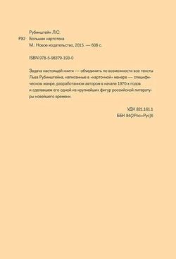 Задача настоящей книги — объединить по возможности все тексты Льва Рубинштейна, написанные в «карточной» манере — специфическом жанре, разработанном автором в начале 1970-х годов и сделавшем его одной из крупнейших фигур российской литературы новейшего времени.